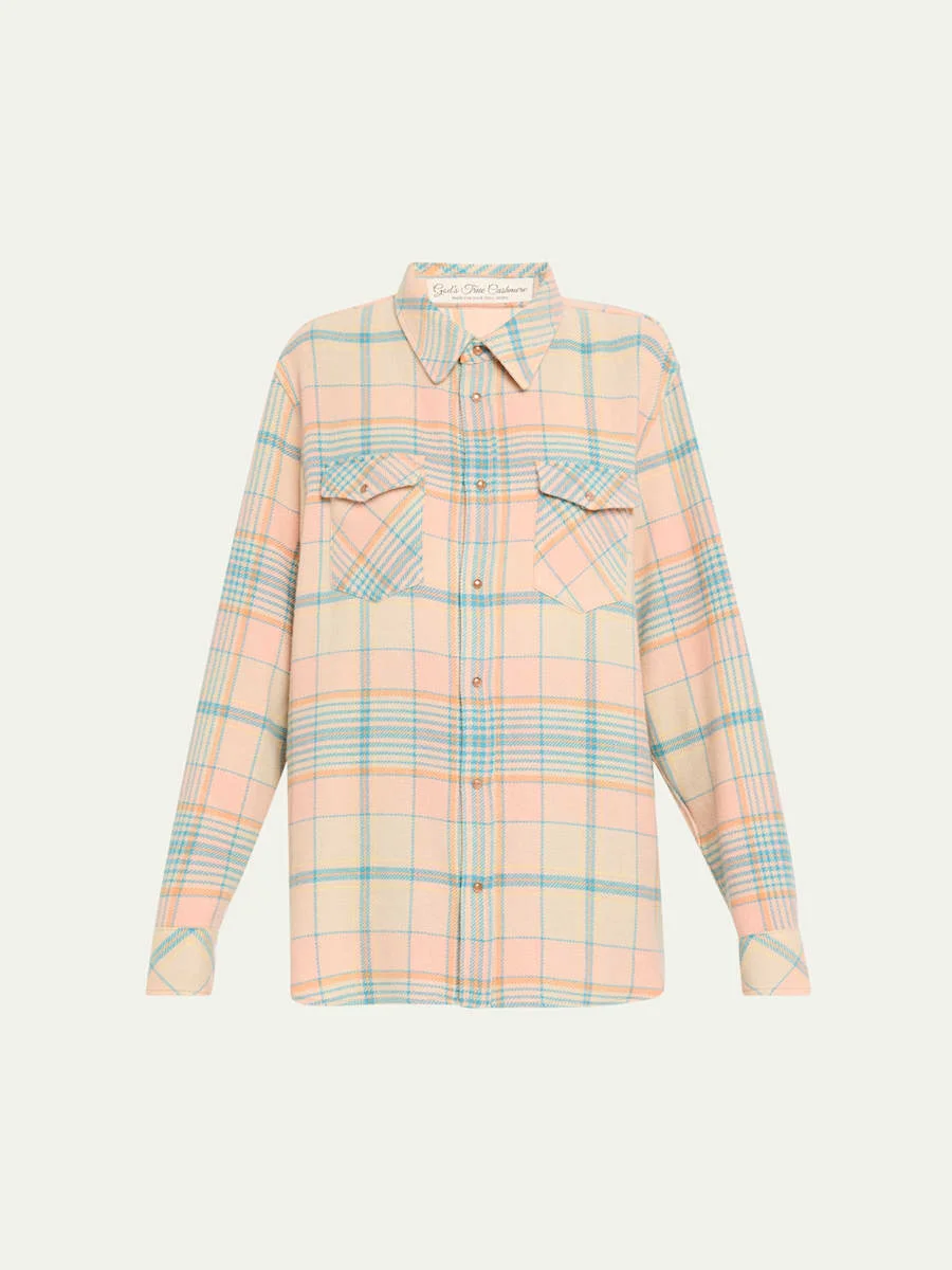 God's True Cashmere "Lover" shirt in a tartan motif Spred collar; button front Long Sleeves; button cuffs Chet flapbuttoned pockets Relaxed fit Shirttail hem Cashmere Hand wash Made in Italy