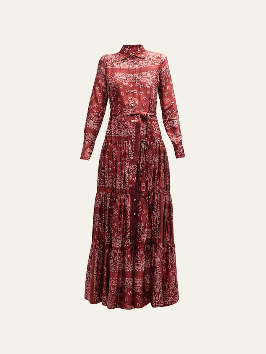 Golden Bandana-Print Long Shirtdress