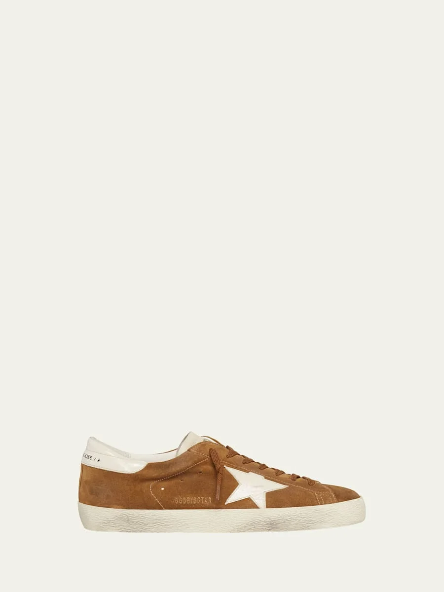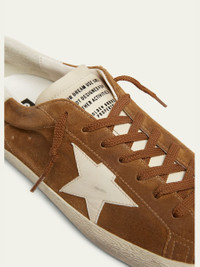 Golden Goose "Super Star" fashion sneakers in calf suede Flat heel Round toe Lace-up vamp Logo text on the tongue Padded collar Cotton/leather lining Contrast leather star on the side Rubber outsole Made in Italy Online Inquiries: BGS21_NCMW2| Store Inquiries: #4920533