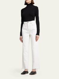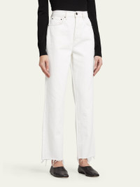 GRLFRND "Cassidy" cropped raw hem jeans in white wash denim Approx. measurements: 12.3" rise; 29" inseam High rise Five-pocket style Straight legs Button/zip fly; belt loops Cotton Dry clean Made in USA Model is 5'10"/177cm. Online Inquiries: BGS21_T33VQ| Store Inquiries: #4287161
