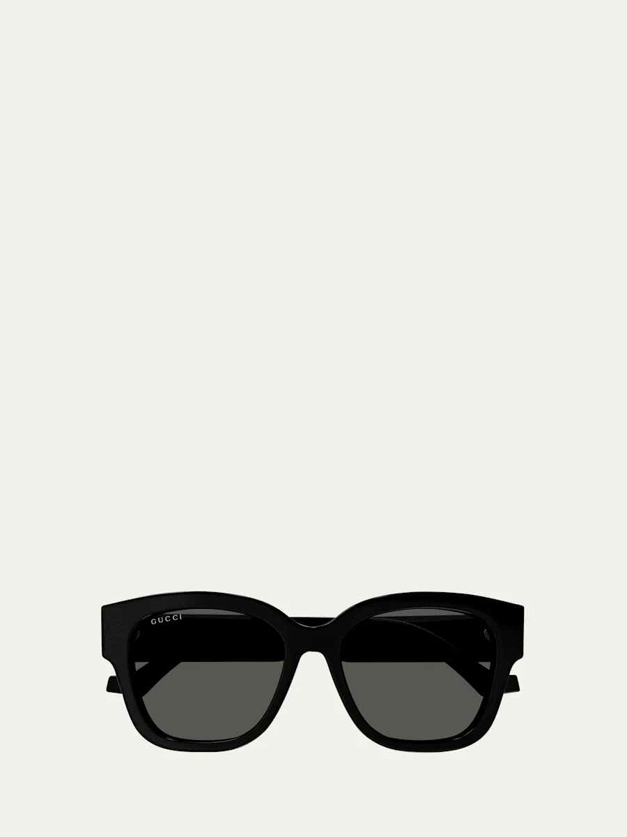 Gucci "GG1550SK" square sunglasses in acetate Lens/bridge/temple (in mm): 54-18-150 Saddle nose bridge GG logo on temples Thin, tapered arms 100% UVA/UVB protection Made in Italy Proposition 65 warning for California residents Online Inquiries: BGS21_D4UMC| Store Inquiries: #4709710