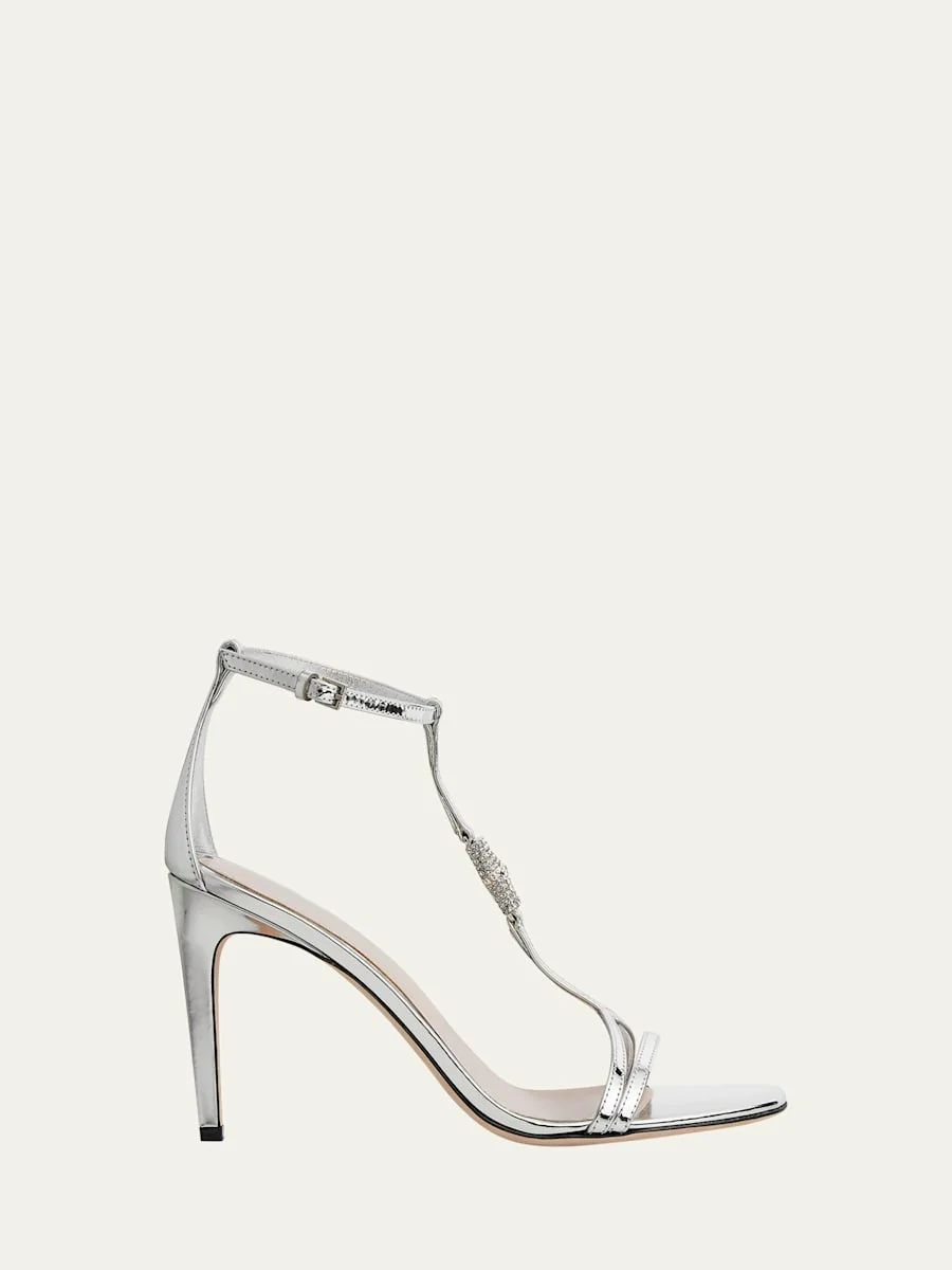 Gucci sandals in metallic leather with a bamboo detail 3.75 in / 95 mm stiletto heel Open square toe Caged vamp Adjustable ankle strap Leather outsole Lining: Leather Made in Italy