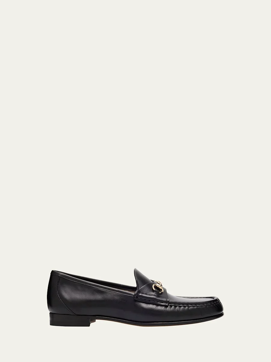 Gucci loafers in smooth calfskin 0.25 in / 10 mm flat heel Apron toe Gold-tone horsebit hardware Notched vamp Slip-on style Leather lining and outsole Spot clean, professional cleaning recommended Made in Italy Size Note: Runs true to size. Online Inquiries: BGS21_X6S6T| Store Inquiries: #4927690