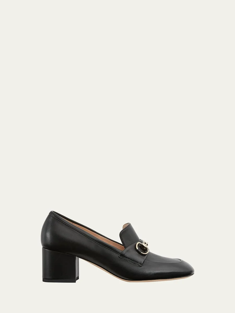 Gucci pumps in nappa leather with horsebit accent 2.25 in / 55 mm block heel Round apron toe Notched vamp Slip-on style Light gold-tone hardware Leather outsole Lining: Leather Spot clean, professional cleaning recommended Made in Italy Size Note: Runs true to size. Online Inquiries: BGS21_X6XWH| Store Inquiries: #5044545