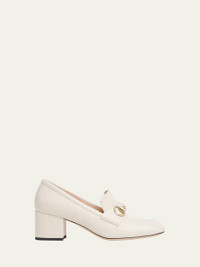 Gucci pumps in nappa leather with horsebit accent 2.25 in / 55 mm block heel Round apron toe Notched vamp Slip-on style Light gold-tone hardware Leather outsole Lining: Leather Spot clean, professional cleaning recommended Made in Italy Size Note: Runs true to size. Online Inquiries: BGS21_X6XWH| Store Inquiries: #5044545