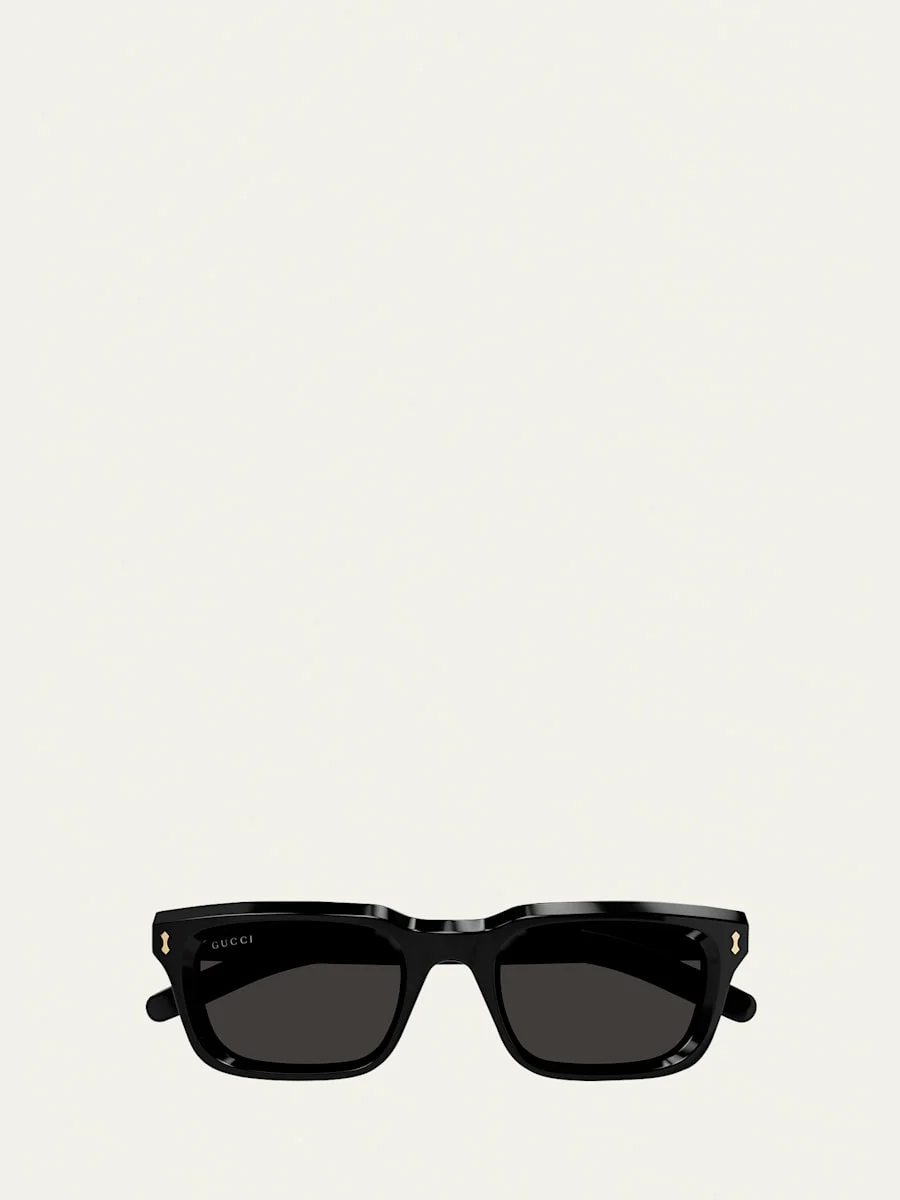 Gucci "Gg1524sm" rectangle sunglasses in acetate Eye/bridge/temple (in mm): 64-13-145 Temples with gold-tone hardware and logo lettering Solid-color lenses Right lens logo script Saddle nose bridge Thin arms; curved temple tips Acetate 100% UVA/UVB protection Made in Italy Proposition 65 warning for California residents Online Inquiries: BGS21_NBSNT| Store Inquiries: #4708497