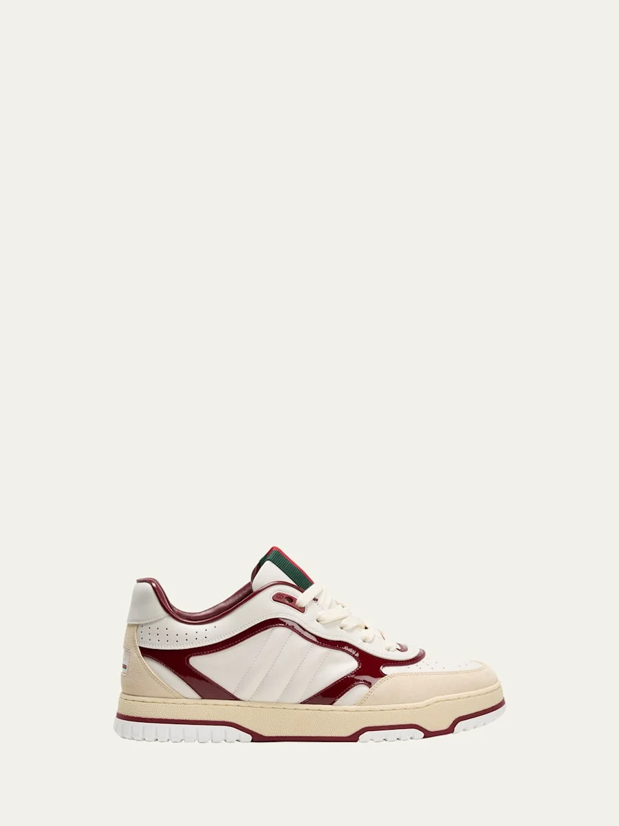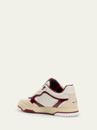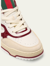 Inspired by the summer spirit and beach clubs on the Italian coast, this item is part of Gucci Lido. The first sneakers envisioned by Sabato De Sarno for the House, the Re-Web sees Gucci’s heritage stripes as a bold statement on a contemporary silhouette. Defined by multiple iconic details, this new sneaker takes center stage with the bold green and red Web tongue. Gucci sneakers crafted from white leather and suede with a Gucci Rosso Ancora trim 1.3 in low heel Round toe Lace-up vamp Tongue with signature webbing Logo script and interlocking G Web tag Rubber outsole Additional pair of laces included Made in Italy Online Inquiries: BGS21_NC9JR| Store Inquiries: #4837167