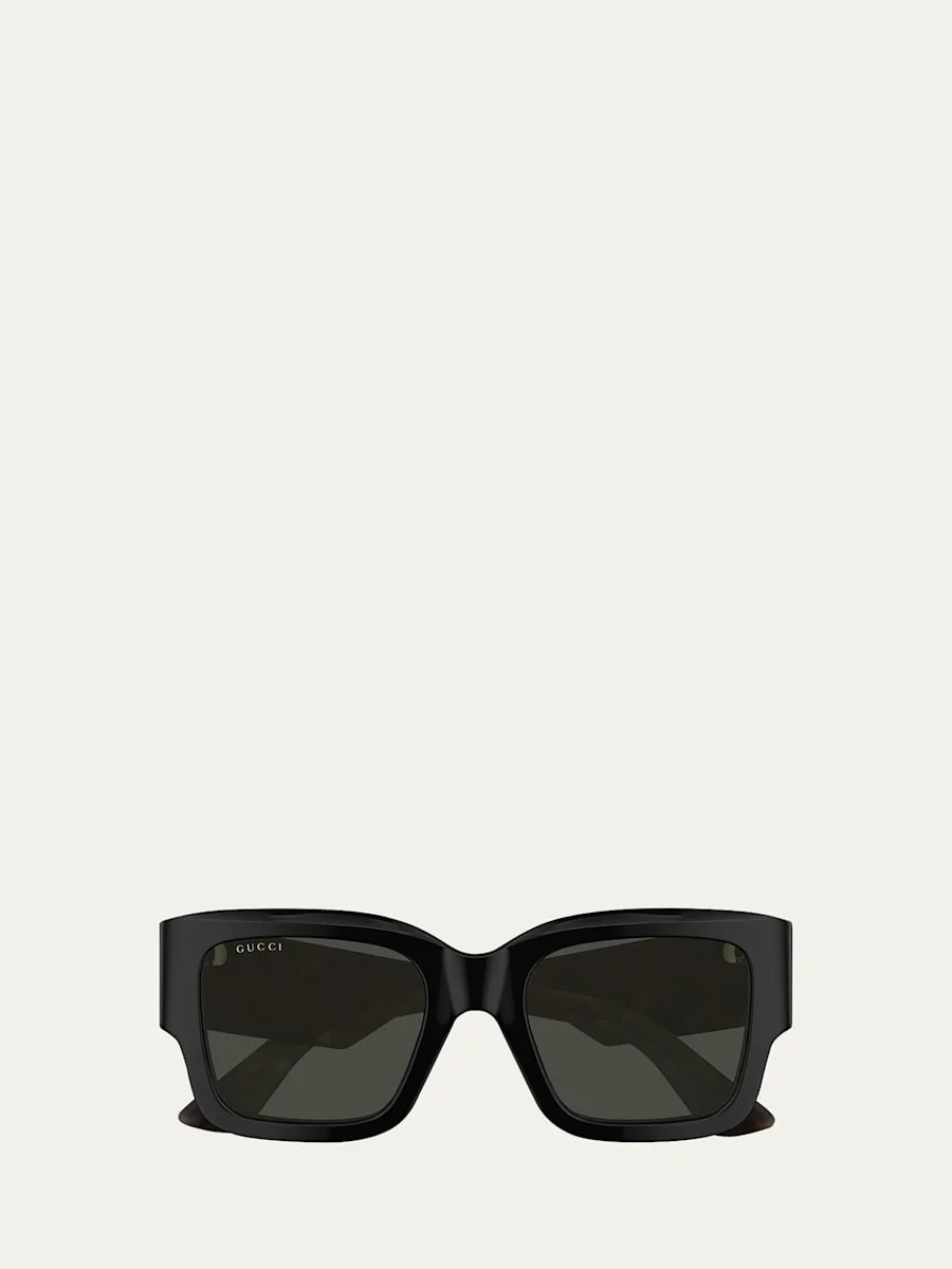 Gucci rectangle sunglasses in acetate Lens/bridge/temple (in mm): 52-21-140 Solid-color lenses Logo on side temples Wide, tapered arms 100% UVA/UVB protection Made in Italy Proposition 65 warning for California residents Online Inquiries: BGS21_D505P| Store Inquiries: #4867985