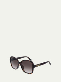 Gucci square sunglasses in injection plastic. Eye/bridge/temple (in mm): 57-16-145. Monochromatic lenses; logo script. Interlocking GG at temples. 100% UVA/UVB protection. May be fitted with prescription lenses. Made in Italy. Online Inquiries: BGS21_D3MA0| Store Inquiries: #3384476