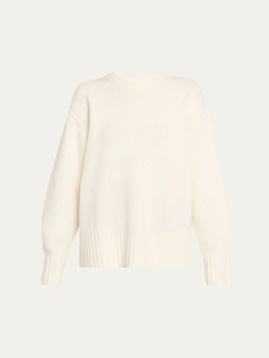 Guest in Residence Mongolian cashmere sweater finished with rib trim Approx. 24.3”L from shoulder to hem Crew neckline Long sleeves; approx. 31.5"L Drop shoulders Relaxed fit Hits below the hips Pullover style Cashmere Dry clean Imported Model is 5'10"/177cm. Online Inquiries: BGS21_T6YBT| Store Inquiries: #4673505