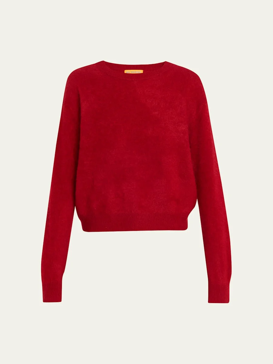 Knit from 100% brushed cashmere with a soft, grizzly-inspired finish, this sweater by Guest in Residence is lightweight, yet rich in texture and perfect for layering Crew neckline Long sleeves Relaxed fit Hip length Ribbed cuffs and hem Pullover style Cashmere Imported Online Inquiries: BGS21_T8R5N| Store Inquiries: #5047752