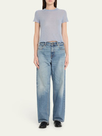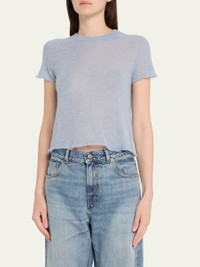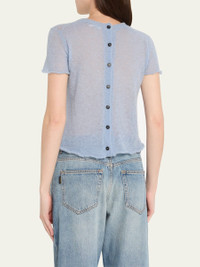 HAIKURE "Tiff" sheer woolblend sweater finished with raw trim Crew neckline Short sleeves Classic fit Hem falls to the hip Back button closure Wool/polyester Dry clean Made in Italy