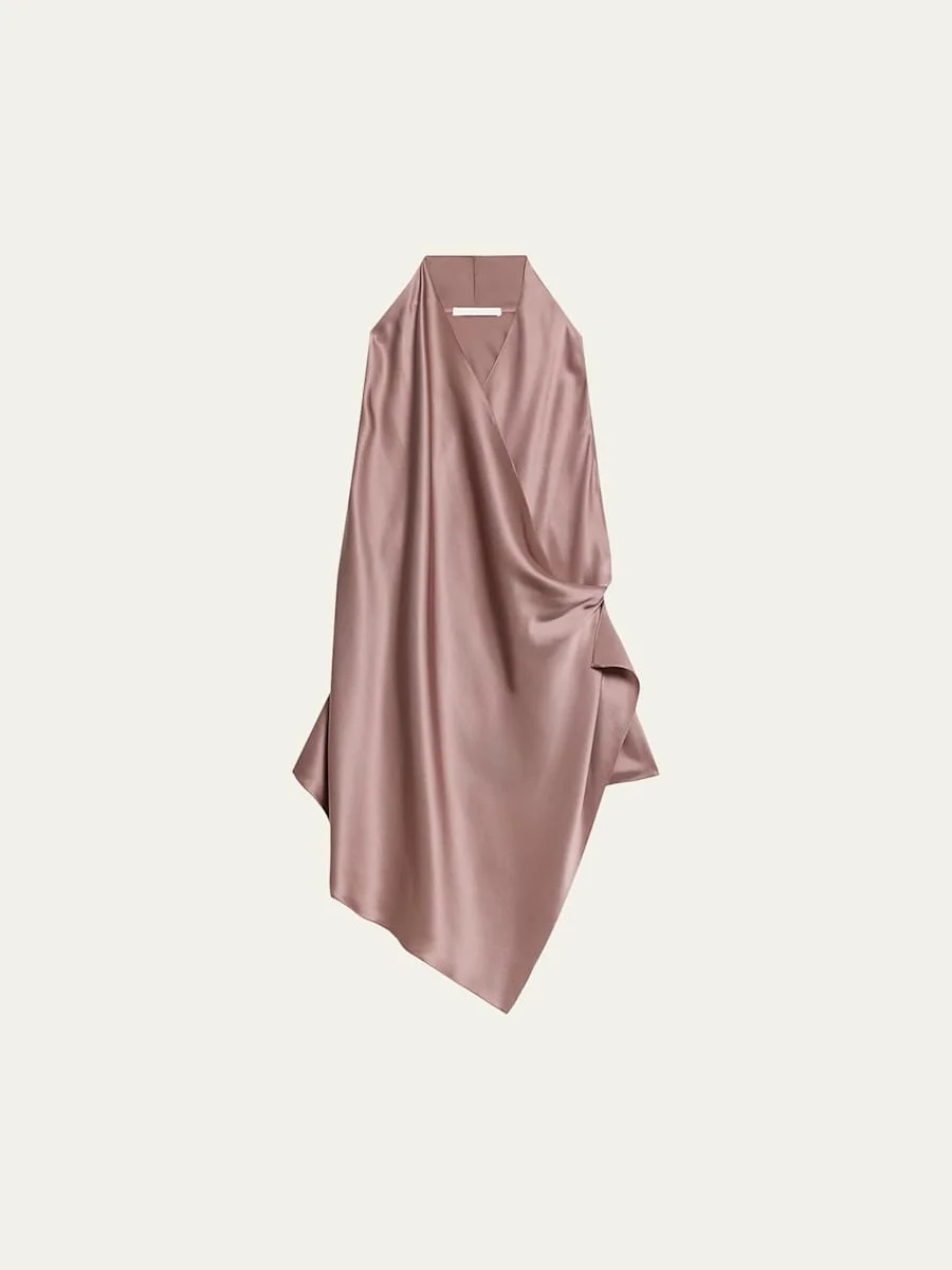 Draped Silk Cowl-Neck Top