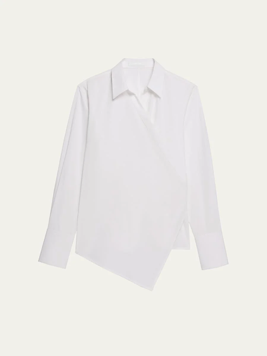 Helmut Lang crisp cotton wrap shirt Point collar Long sleeves with button cuffs; approx. 34.0"L Classic fit Hem sits at the hip Front button closure Cotton Unlined Dry clean Imported Online Inquiries: BGS21_T6Z0P| Store Inquiries: #5072144