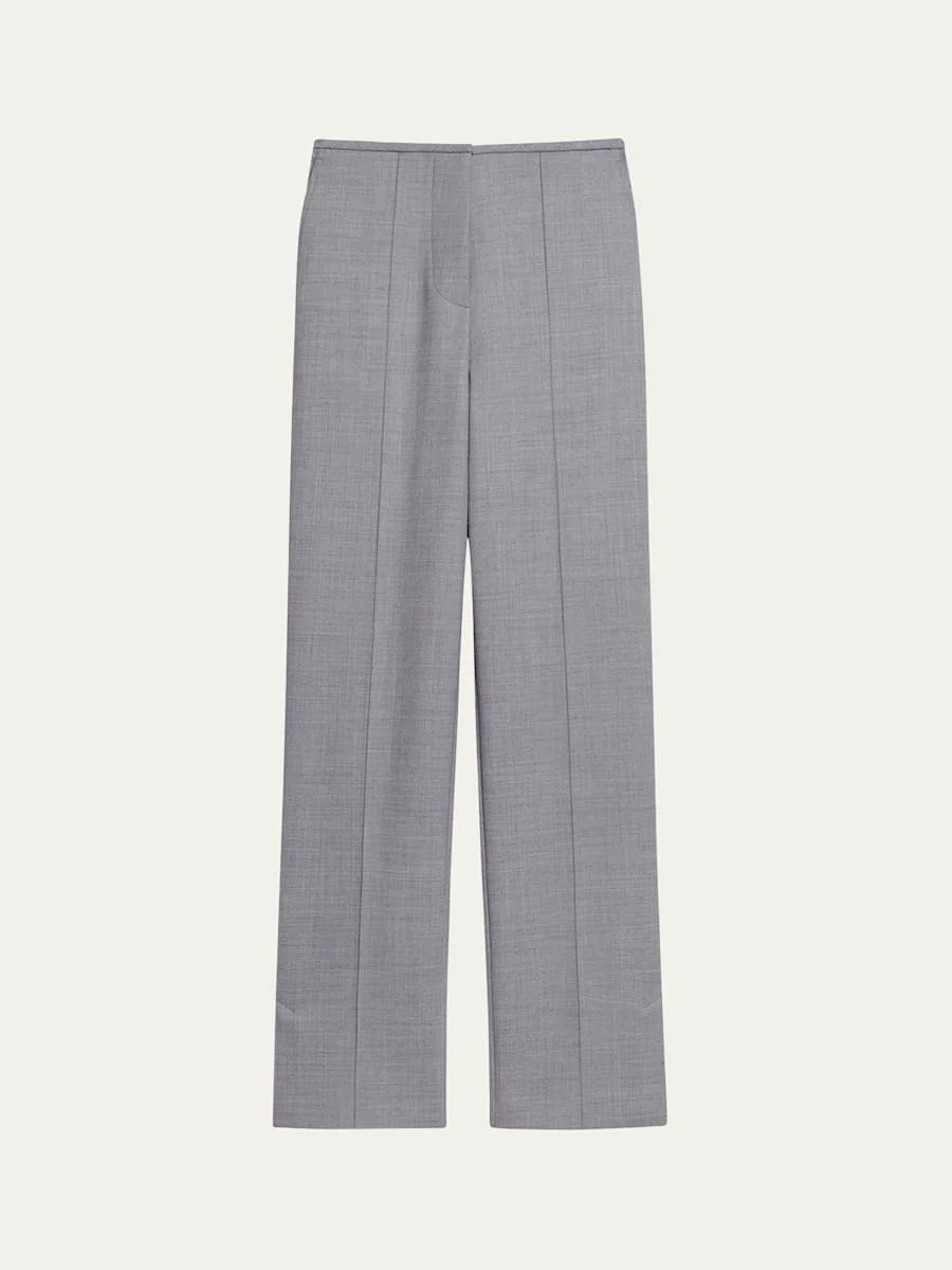 Helmut Lang wool-blend car trousers Approx. 9.9" rise; 33.5" inseam Low-rise; sits at the hip Four-pocket style Pintuck front Straight legs Full length with side slits Hook/zip fly Polyester/virgin wool/elastane Unlined Dry clean Imported Online Inquiries: BGS21_T6Z0S| Store Inquiries: #5072147