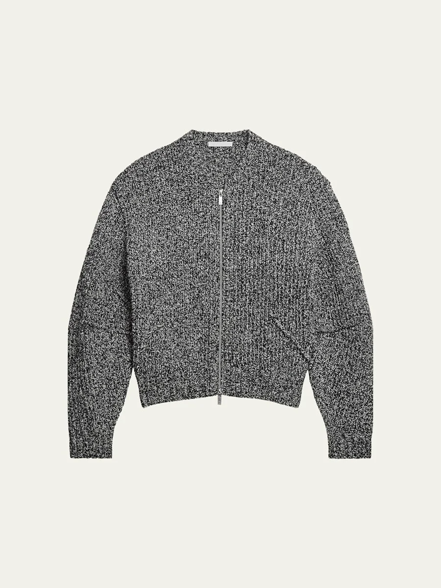 Crafted from marled ribknit, this Helmut Lang sweater is adorned with a twoway zipfront for versatile styling. Baseball collar Dropped shoulders Long curved sleeves with darts Relaxed fit Hem falls to the hip Viscose/nylon/polyamide/elastane Dry clean Imported
