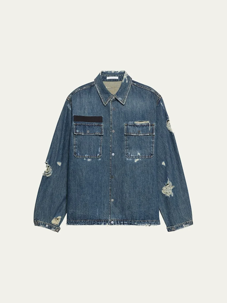 Men's Distressed Denim Uniform Shirt