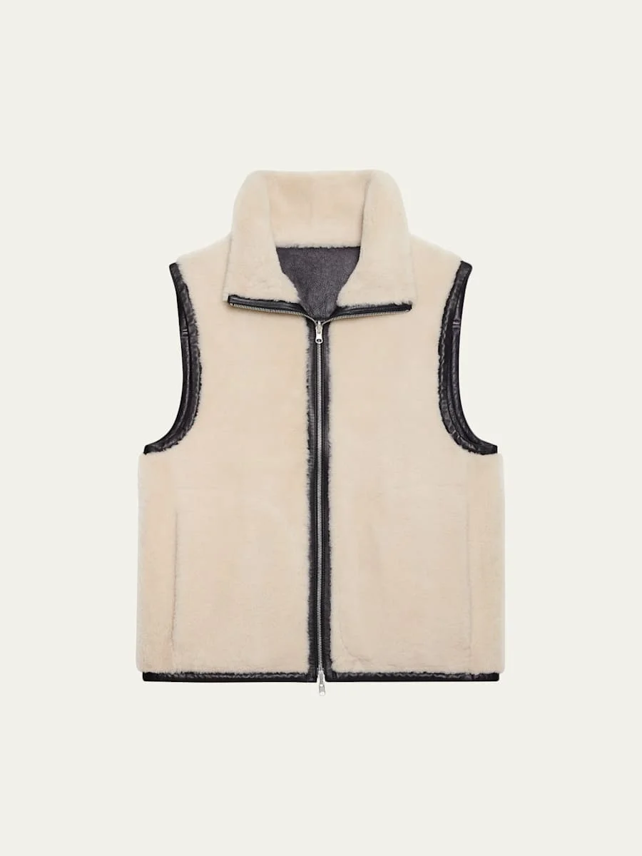 Men's Reversible Shearling Funnel Neck Full-Zip Vest
