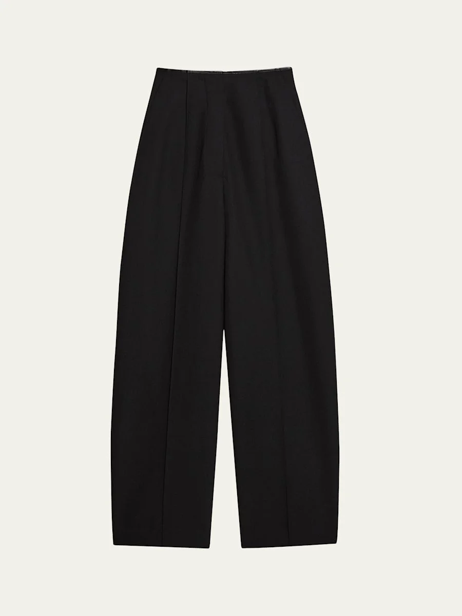 Helmut Lang carrot pants with a modern silhouette Approx. 12.8" rise; 29" inseam High rise Four-pocket style Loose, tapered fit Full length Hook/zip fly; belt loops Polyester/virgin wool Unlined Dry clean Imported Online Inquiries: BGS21_T6Z0Q| Store Inquiries: #5072145