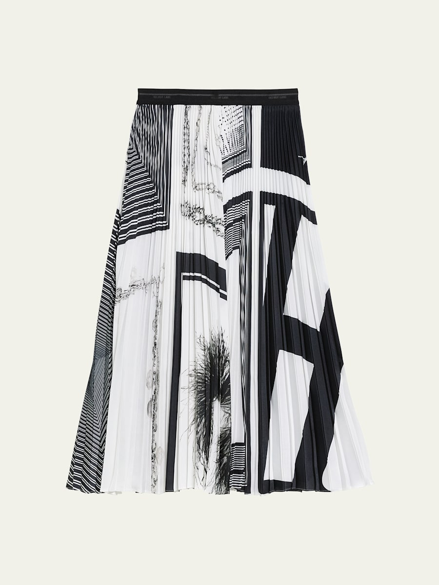 Helmut Lang abstract-print pleated midi skirt featuring an elastic logo waistband High right A-line silhouette Hem falls below the knee Pull-on style Polyester Unlined Dry clean Imported Shipping Direct from Vendor, usually ships within 7 business days. Online Inquiries: BGS21_T6LTA| Store Inquiries: #5009456