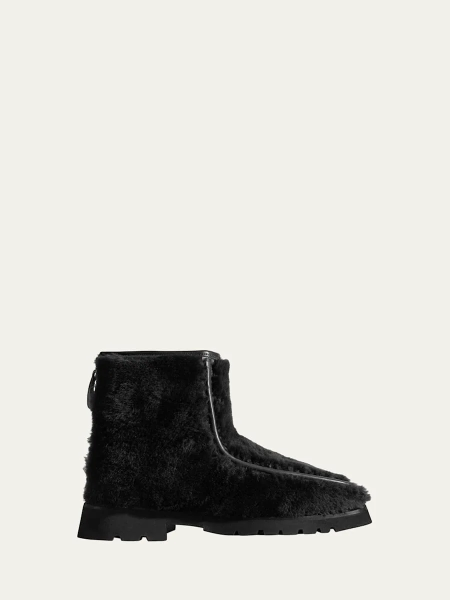 HEREU "Armenta" ankle boots in dyed sheep shearling (Italy) with smooth leather trim 1.25 in / 30 mm block heel Round moc toe Heel zip closure Leather lining Treaded rubber sole Made in Spain Online Inquiries: BGS21_X6ZFX| Store Inquiries: #5071182