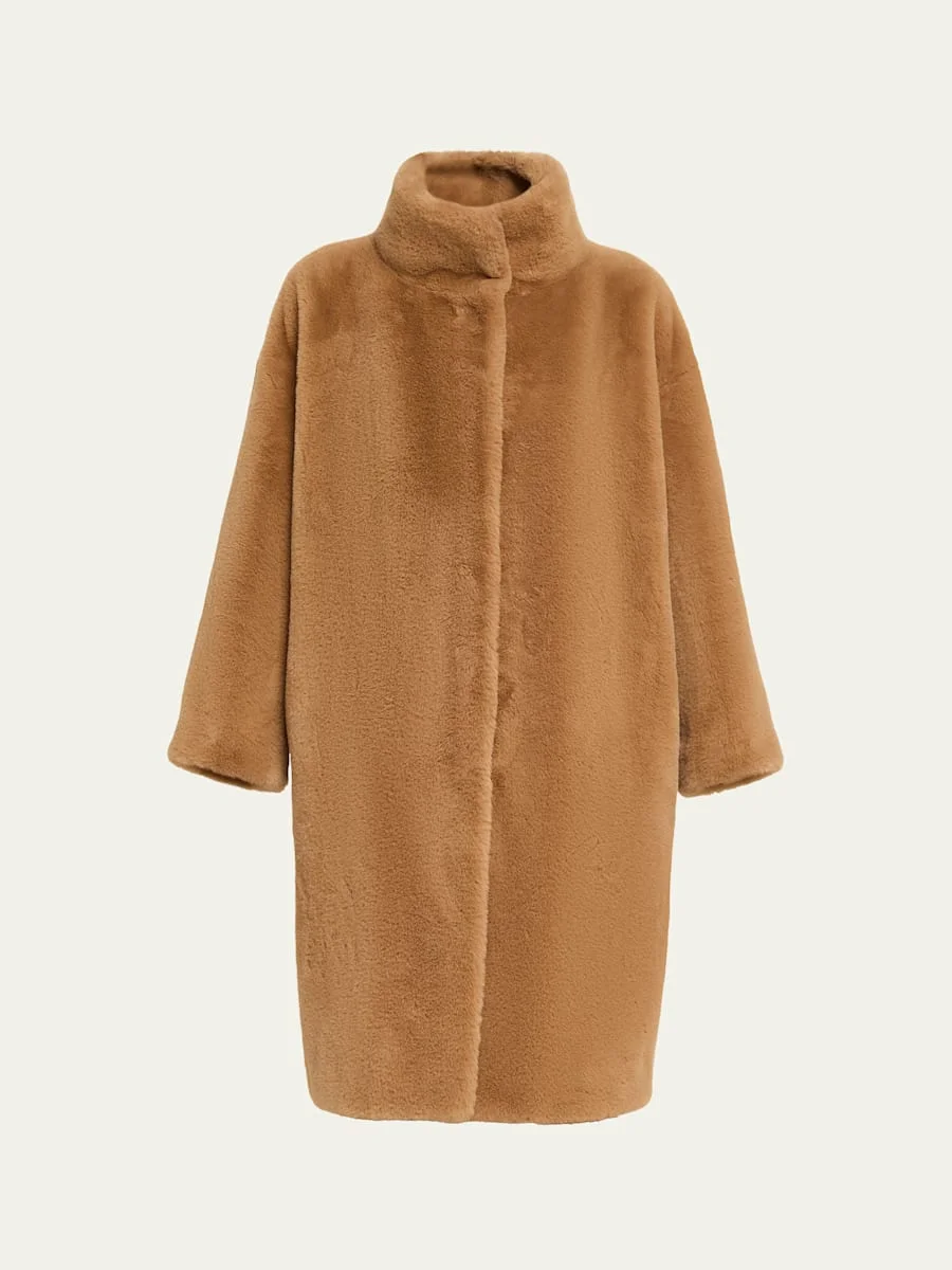 high-neck faux-fur coat