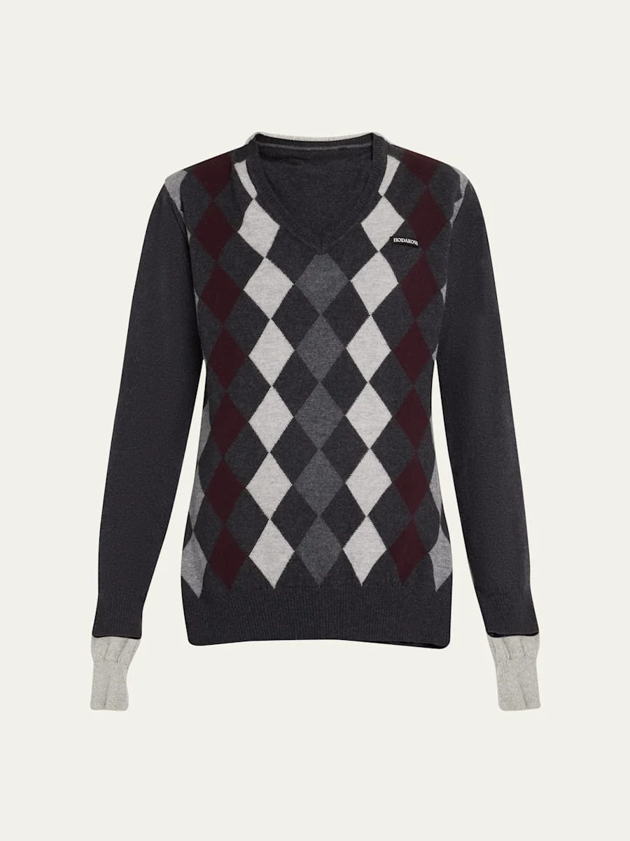 HODAKOVA Knitted double sweater V-Neck Long Sleeve Open closure Wool Made in Sweden Online Inquiries: BGS21_B9HRN| Store Inquiries: #4879200