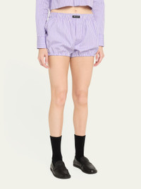 HOMMEGIRLS poplin bloomers feature a crisp stripe motif and logo label Embroidered with our signature 'Hg' monogram Elasticized logo waistband Approx. 3" inseam Side pockets Relaxed fit Elastic hem Step-in style Cotton Machine wash cold Made in Italy Online Inquiries: BGS21_B9YTH| Store Inquiries: #5008663
