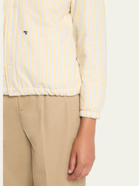 HOMMEGIRLS bomber jacket in a multi-striped design Approx. 30"L from shoulder to hem Spread collar; button front Long sleeves with button cuffs; approx. 24"L Side pockets Yoked back Relaxed fit Mid-length Cotton Machine wash cold Made in Italy Online Inquiries: BGS21_B9YTC| Store Inquiries: #5008657