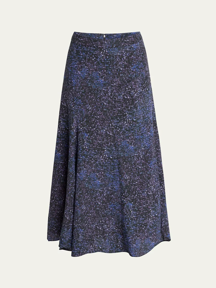 Hortensia Mosaic Flared Stretch Silk Skirt