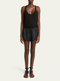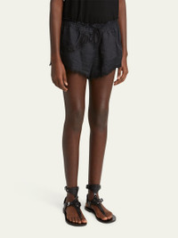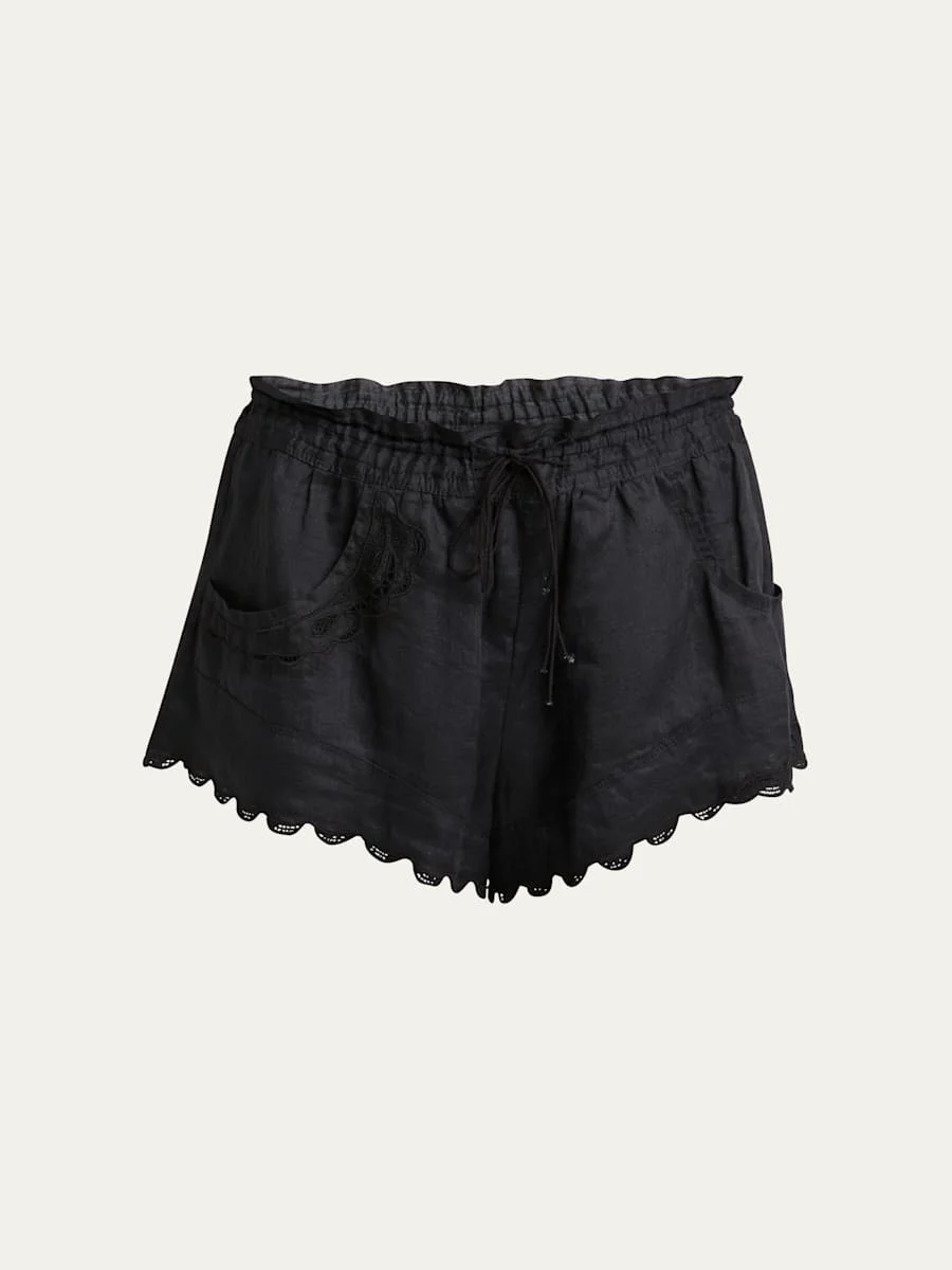 Isabel Marant "Lola" ladder-stitch shorts with scallop trim Drawstring waist Relaxed legs Mid-thigh length Front pockets Ramie Dry clean Imported Online Inquiries: BGS21_B9X16| Store Inquiries: #4991939