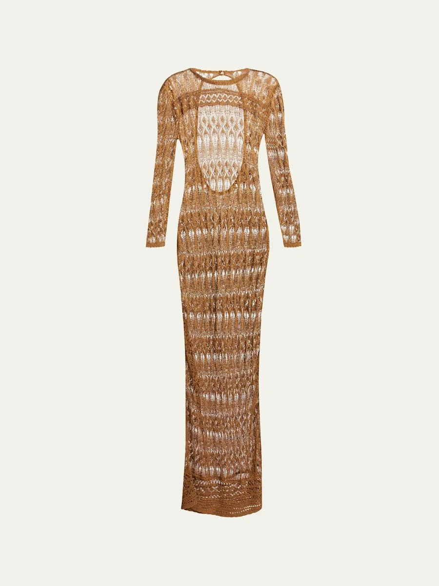 Isabel Marant "Paloma" crochet dress Bateau neckline; open-back Long sleeves Column silhouette Full length Slipover style Viscose Dry clean Imported Online Inquiries: BGS21_B9X15| Store Inquiries: #4991938