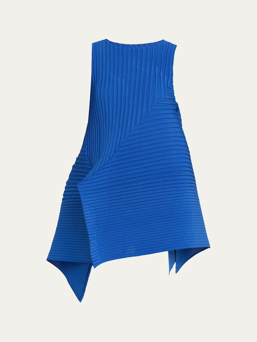 This sculptural dress by Issey Miyake is designed in a dynamic form of Fold Pleats for an asymmetric statementmaking silhouette Boat neckline Sleeveless Hem falls above the knee Aline silhouette Polyester Made in Japan