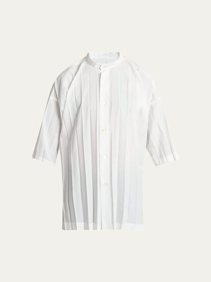 Homme Plisse Issey Miyake lightweight shirt featuring wide pleats made by hand Band collar Button closure Short sleeves Tailored fit Polyester Unlined Machine wash cold, line dry Imported Online Inquiries: BGS21_NCYF0| Store Inquiries: #4976020