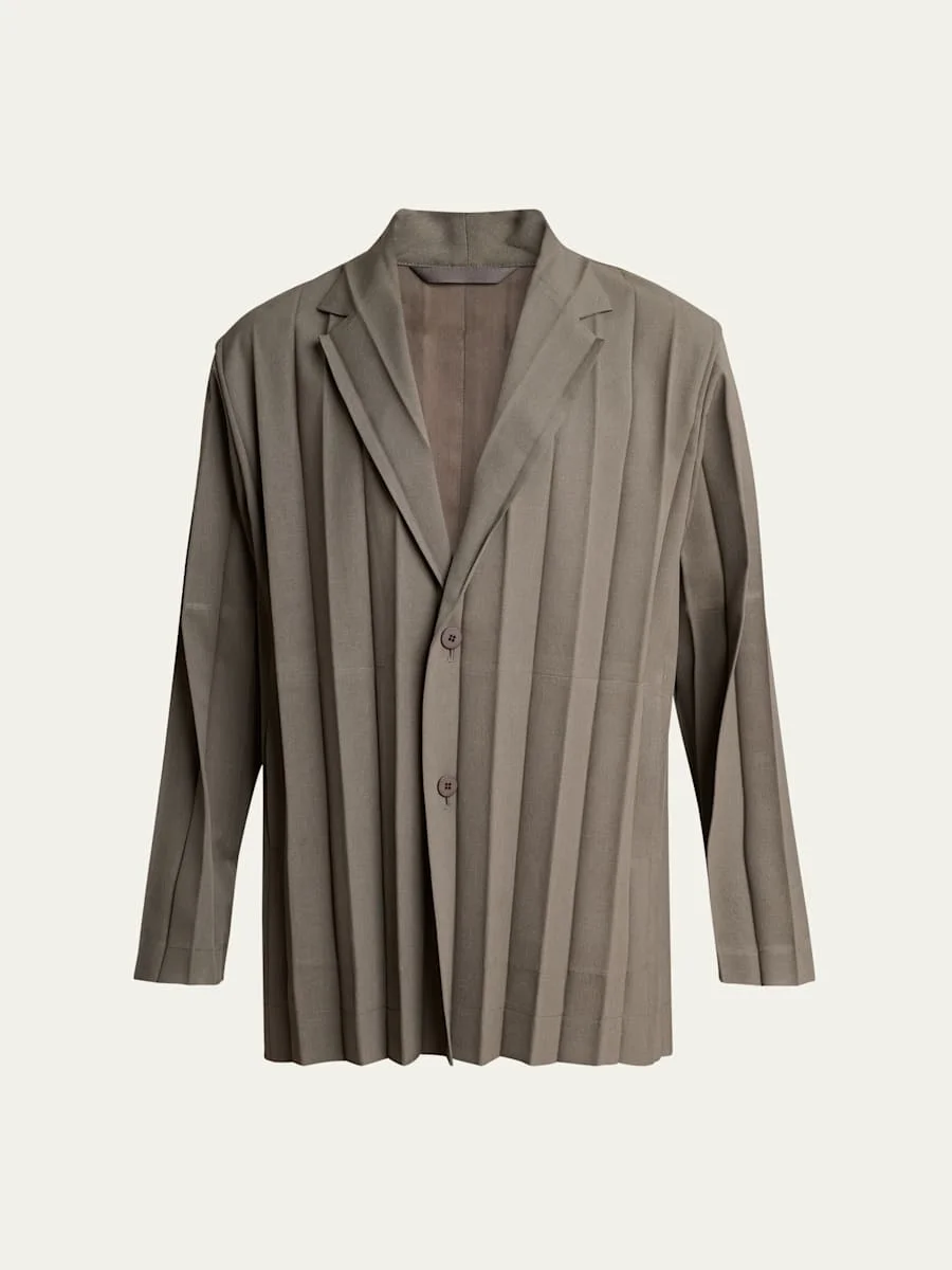 The wide accordion pleating of this Homme Plisse Issey Miyake sport coat gives this piece a textured feel. Notch lapels Two-button closure Side-entry pockets Relaxed fit Polyester Machine wash cold, line dry Imported Online Inquiries: BGS21_NDRNE| Store Inquiries: #5072899