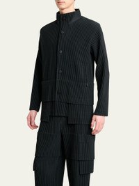 Homme Plisse Issey Miyake solid buttondown shirt defined by expert pleating Stand collar Button front Multipockets Long sleeves Polyester Machine wash cold, line dry Imported