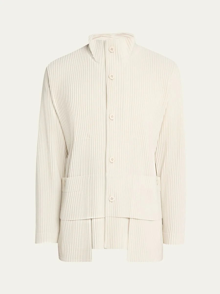 Homme Plisse Issey Miyake solid button-down shirt defined by expert pleating Stand collar Button front Multi-pockets Long sleeves Polyester Machine wash cold, line dry Imported Online Inquiries: BGS21_NDRN1| Store Inquiries: #5072884