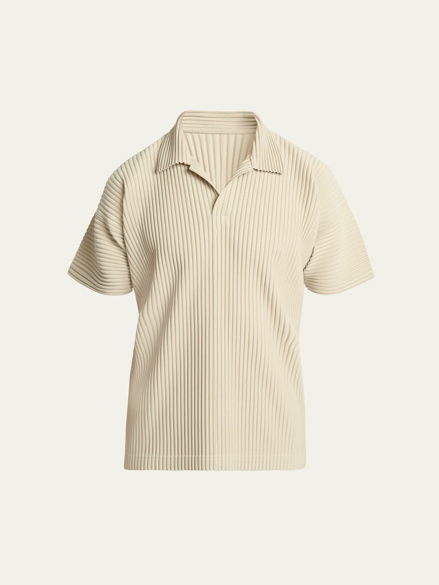 Homme Plisse Issey Miyake polo shirt with signature pleating throughout Open collar Short sleeves Regular fit Pullover style Polyester Machine wash cold, line dry Imported Online Inquiries: BGS21_NDHTD| Store Inquiries: #5040945