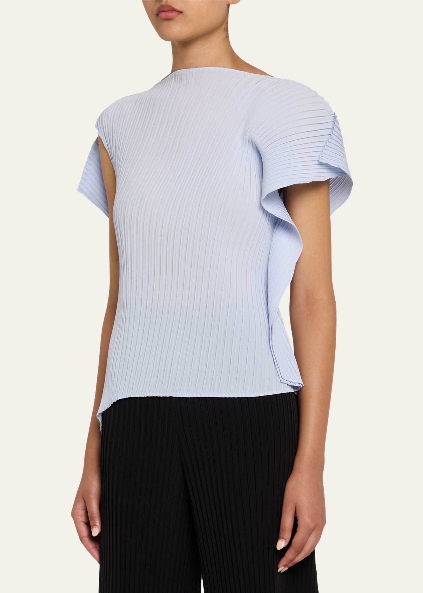 Issey Miyake "Shadow Study Pleats" solid top is crafted entirely from lightweight pleated fabric Bateau neckline Short sleeves Relaxed fit Asymmetric hem Pullover style Polyester Machine wash cold, machine wash line dry Made in Japan Online Inquiries: BGS21_B9XW5| Store Inquiries: #4997598