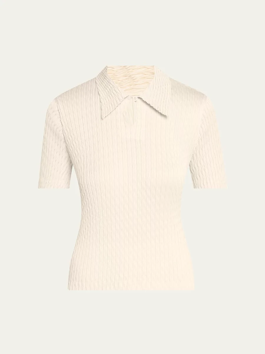 Issey Miyake polo shirt combines sleek pleats with a refined silhouette Spread collar Short sleeves Slim fit Pullover style Polyester Machine wash cold, machine wash line dry Made in Japan Online Inquiries: BGS21_B9XWN| Store Inquiries: #4997615