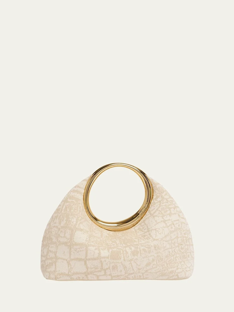 Jacquemus "Le Petit Calino" top handle bag in croc-printed cotton Metal top handles Open top with magnetic closure Lining: Cotton Approx. 8.3"H x 12.9"W x 4.9"D Made in Italy Online Inquiries: BGS21_V6F5E| Store Inquiries: #4956097