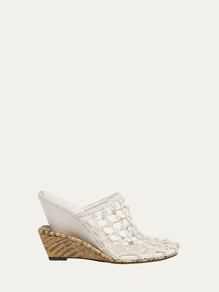 Les Doubles Snake-Print Tresses Wedge Mules