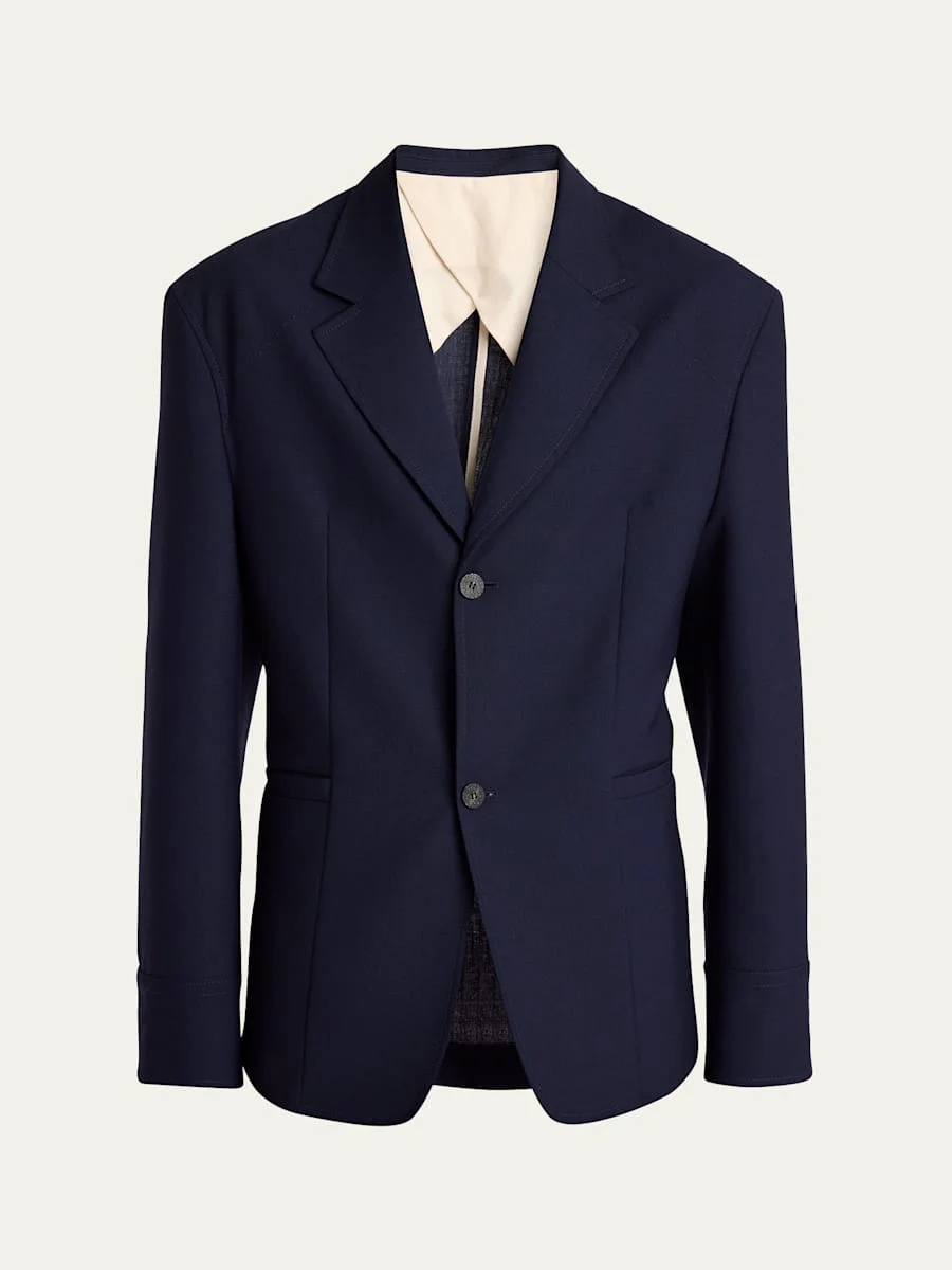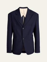 Jacquemus sport coat in solid canvas Notch lapels Two-button closure Side welt pockets Shaping darts on front Two-button cuffs Wool Made in Romania Online Inquiries: BGS21_NCRGB| Store Inquiries: #4935967