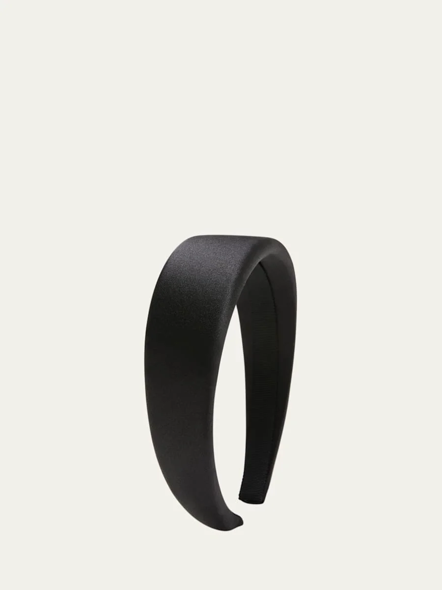 Jennifer Behr "Kate" wide padded headband in silk satin Handmade in New York Flexible One size fits most Made in USA Online Inquiries: BGS21_D4NZA| Store Inquiries: #4581332