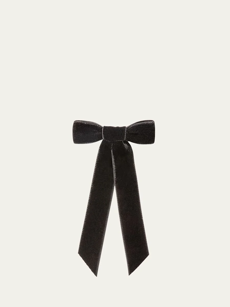 Jennifer Behr velvet bow barrette. Ideal for both evening and everyday wear. Metal base; silk/rayon. Approx. 6"H x 3"W. Made in USA. Online Inquiries: BGS21_D5H3S| Store Inquiries: #2290129
