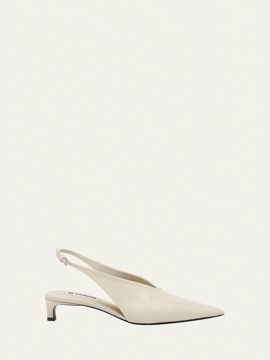 Jil Sander smooth calf leather ballerina pumps 1.38 in / 35 mm kitten heel Pointed toe Adjustable slingback strap Leather outsole Spot clean Made in Italy