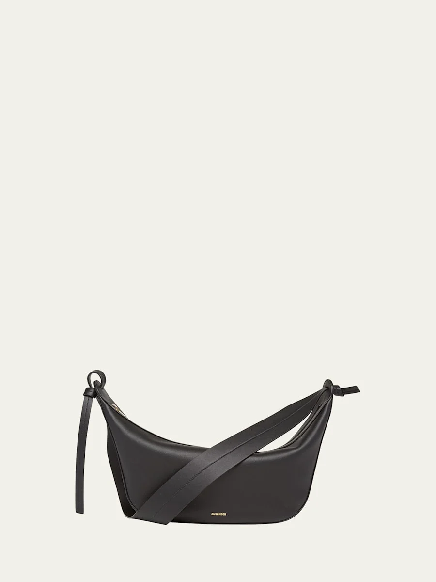 Jil Sander knot crossbody bag in calf leather Crossbody strap Zip top closure Interior, one zip pocket Approx. 3"H x 4.7"W x 2.8"D Made in Italy Online Inquiries: BGS21_V6D9X| Store Inquiries: #4908804