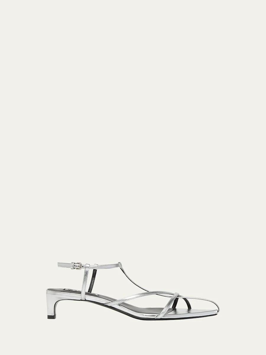 Metallic Kitten T-Strap Sandals