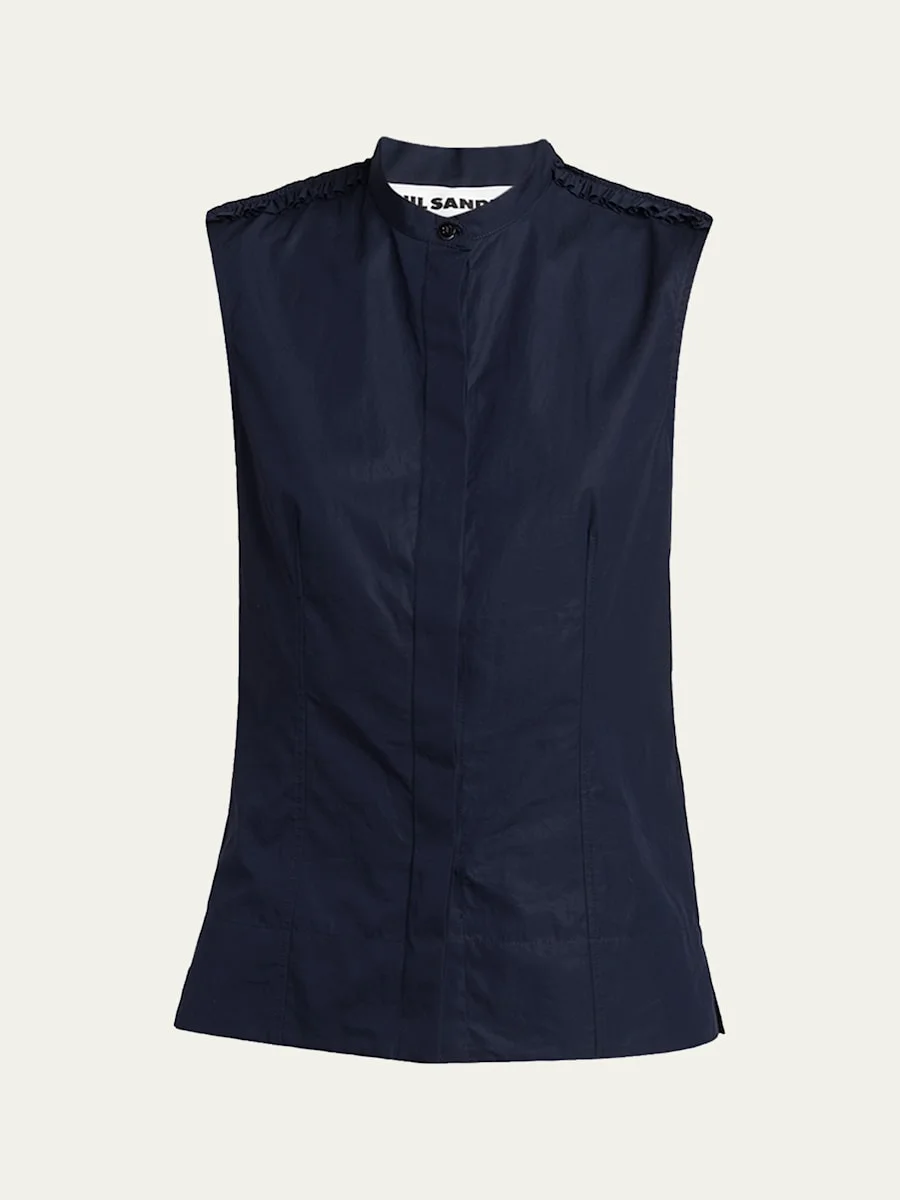 Ruffle-Shoulder Sleeveless Button-Down Shirt