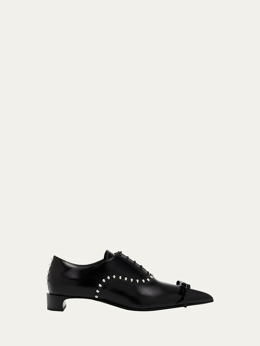 A feminine, yet edgy take on a classic men's silhouette, these Oxfordstyle pumps by Jil Sander are crafted from smooth leather with silvertone studded trim and a dainty bow accent 1.38 in / 35 mm kitten heel Pointed toe Laceup vamp Leather/Rubber outsole Professional cleaning recommended Made in Italy